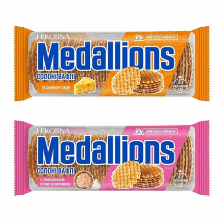 Вафлі 93 г Lekorna Medallions зі смаком сиру та з гімалайською сіллю та часником м/уп