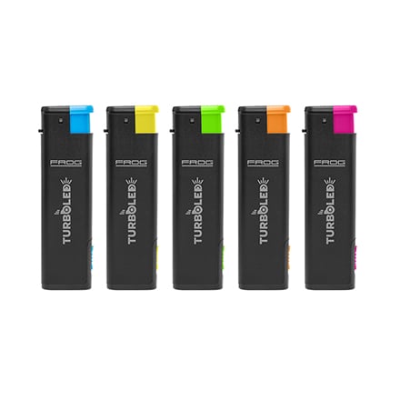 Запальничка 1шт FROG TURBO з ліхтариком чорна с кольоровими вставками п'єзо без/уп