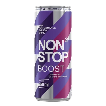 Напій 250 мл NON STOP BOOST безалкогольний енергетичний сильногазований ж/б