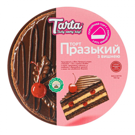 Торт 450 г TARTA Прaзький з вишнею бiсквiтний порційний к/уп