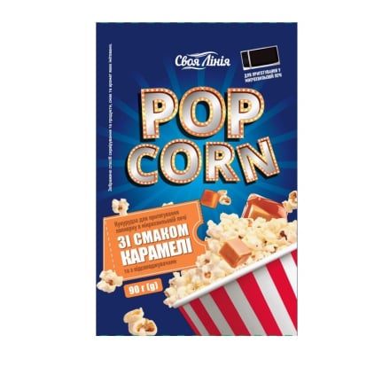 Попкорн 90 г Своя Лінія для мікрохвильової печі зі смаком карамелі м/уп