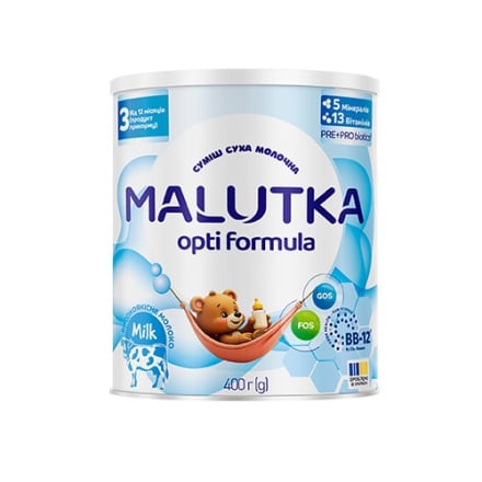 Суміш молочна 400 г MALUTKA Opti Formula 3 для харчування дітей від 12 міс (продукт прикорму) з/б