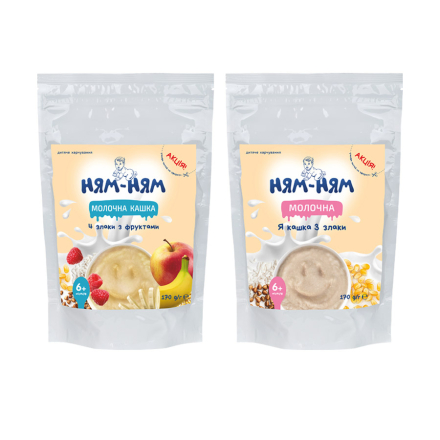 Каша 170г Ням-Ням молочна 3 злаки/4 злаки з фруктами м/п