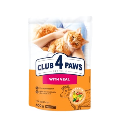 Кoрм 300 г CLUB 4 PAWS Преміум сухий повнораціонний з телятиною для дoрoслих кoтів