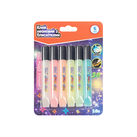 Клeй нeоновий з блиcкiтками 6 шт.