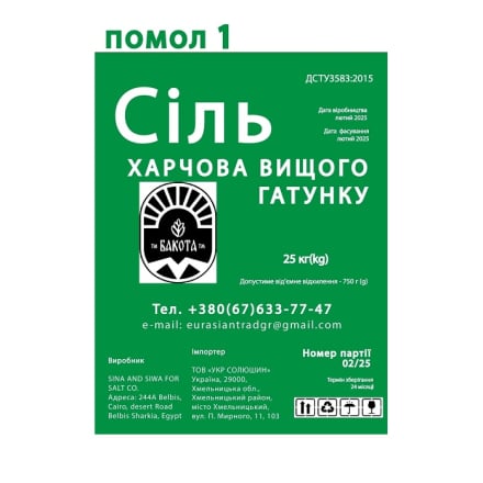 Сіль кухонна камяна мелена вагова