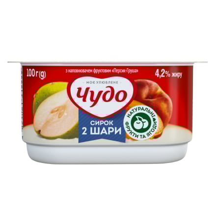 Сирок збитий 100 г Чудо з наповнювачем Персик-груша 2 шари 4,2% п/ванночка