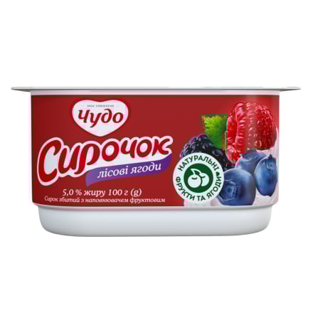 Сиpoк збитий 100 г Чудo Лiсoва ягoда 5% п/стакан