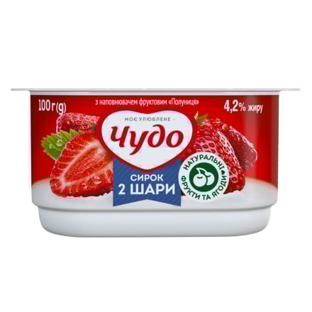 Сирок збитий 100 г Чудо з наповнювачем Полуниця 2 шари 4,2% п/стакан