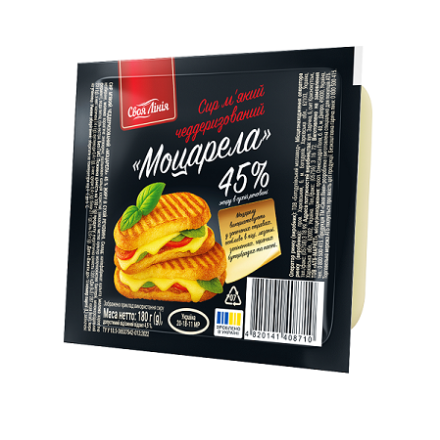 Сир м'який 180 г Своя лінія чеддеризований Моцарела 45% флоу-пак